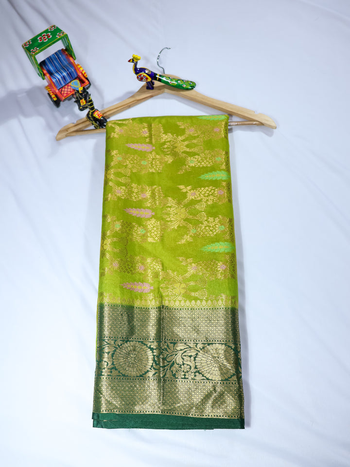Embrace the elegance of Banaras with this stunning Banarasi Silk Saree. Crafted from rich silk, this saree features intricate zari work and traditional patterns that reflect the city’s centuries-old weaving heritage. Its smooth texture, graceful drape, and royal appeal make it a symbol of tradition and sophistication.